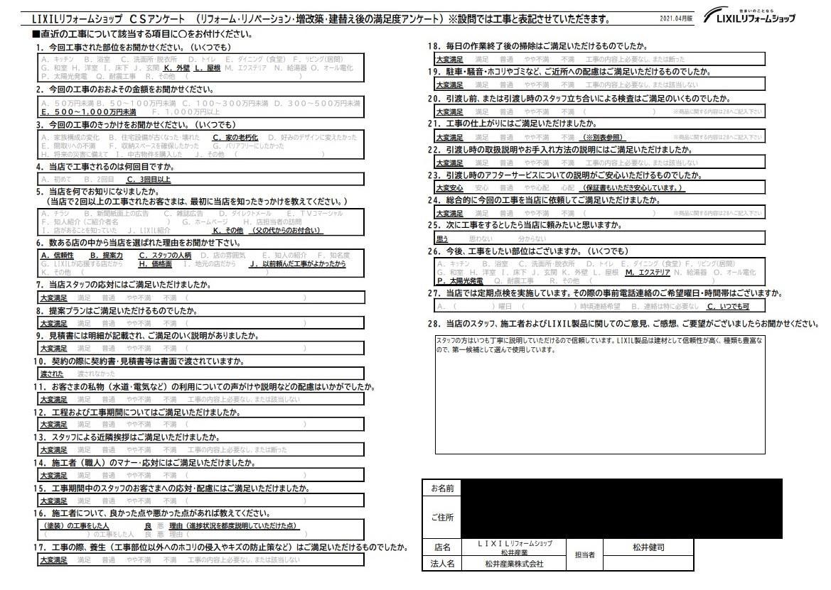 足立区K様邸外壁塗装工事建具工事は完了しアンケートをいただきました。
