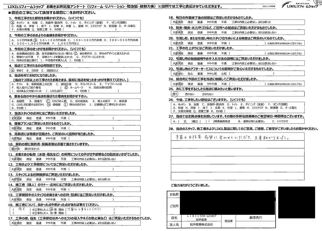 埼玉県三郷市I様邸キッチン交換工事アンケート「予算日程等希望を聞いていただきました」