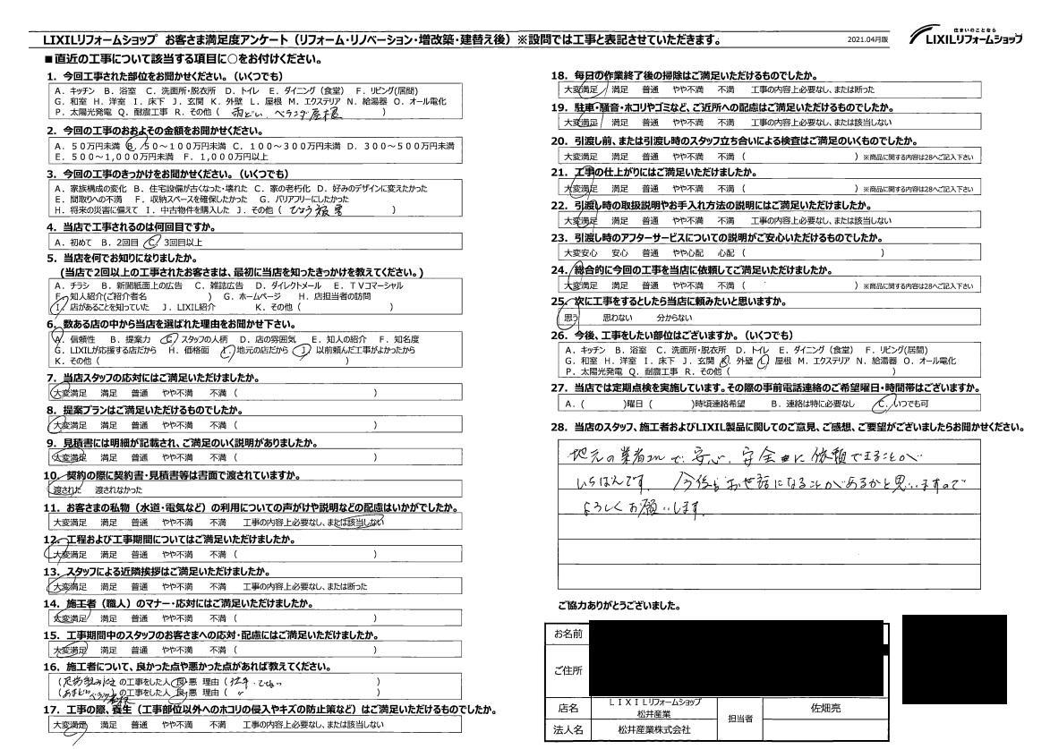 埼玉県北葛飾郡松伏町S様邸雹被害工事完了しアンケートをいただきました。