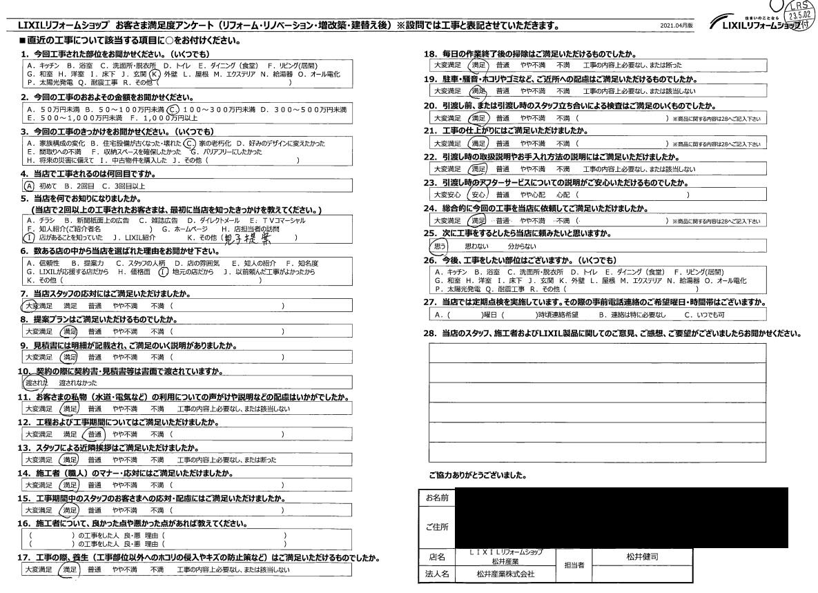 埼玉県三郷市H様邸外壁塗装工事はアンケートをいただきました。