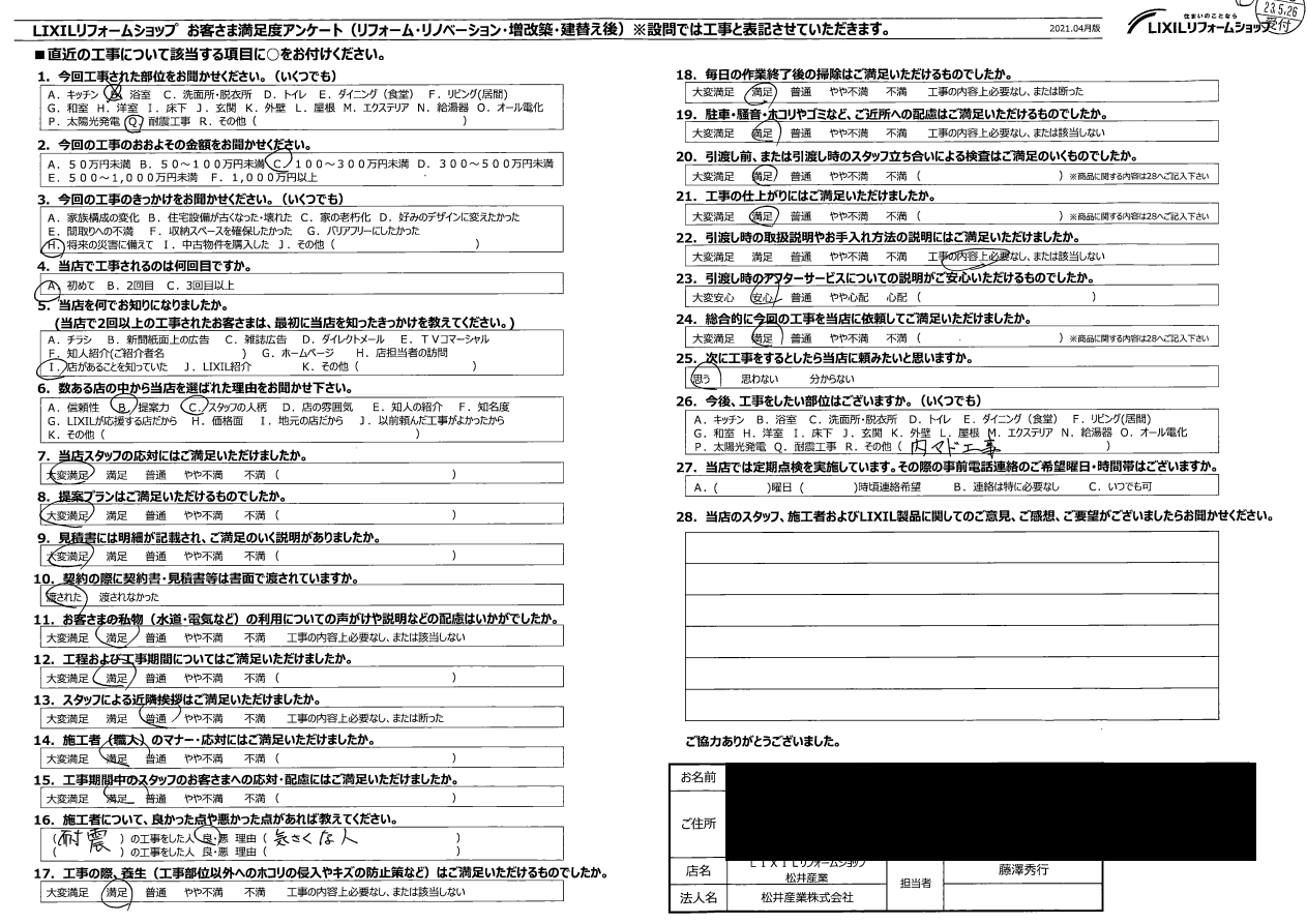 埼玉県吉川市S様邸耐震改修工事が完了しアンケートをいただきました。