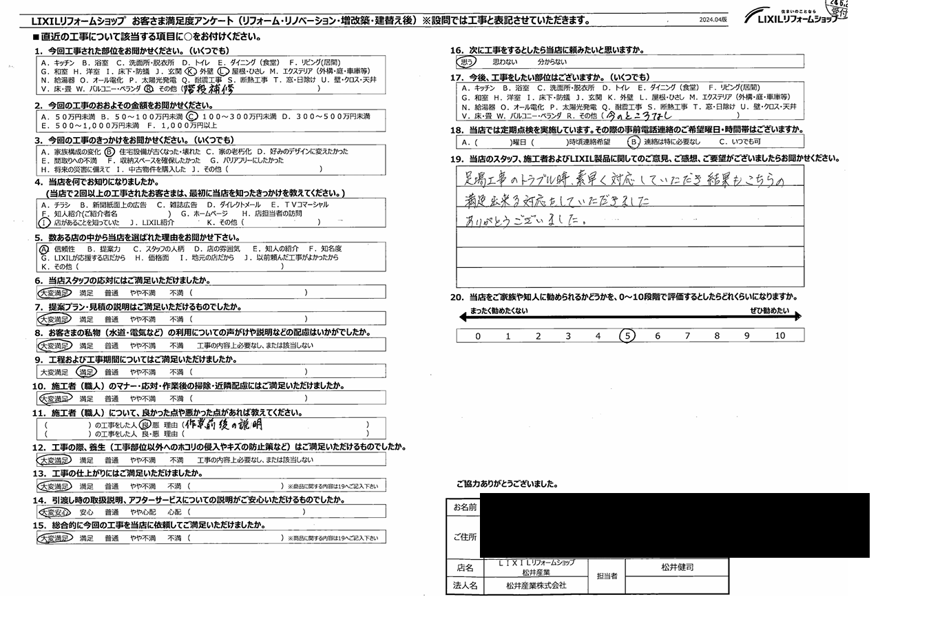 東京都足立区O様邸外壁屋根塗装工事アンケート