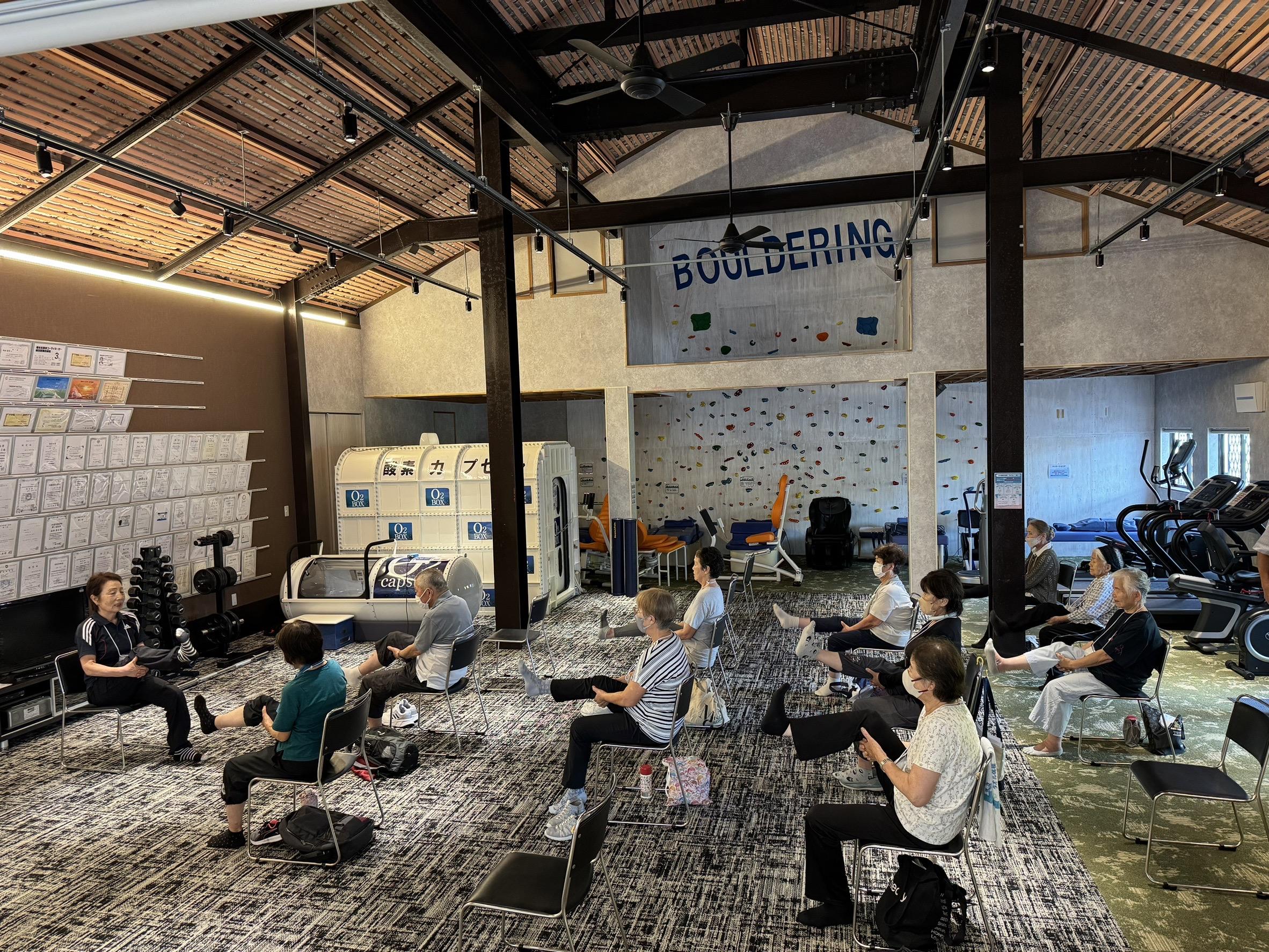 お客様も高齢化されており70代、80代、90代のお客様もいらっしゃいます。今の時代、健康年齢がとても大事と言われます。年を重ねても元気に充実した日々を送っていただくよう、運動や食事が大事ですので介護予防活動をおこなっています。先生に来てもらい体操を行ったり器具を使って運動をしていただいたり、オーナー様、お客様に活動していただいています。人生100年時代、少子高齢化など言われますがいつまでも健康で充実し、お客様とともに頑張っていけるよう松井産業も活動します。