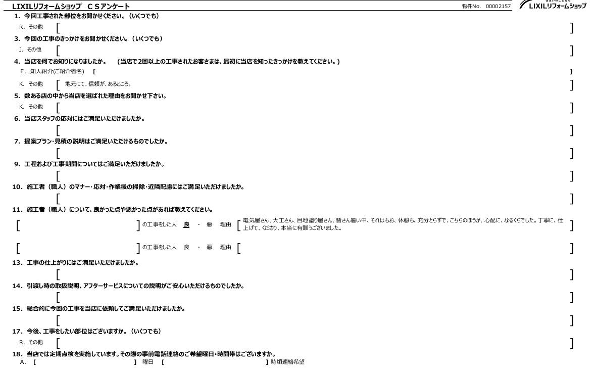 一覧へ戻る埼玉県吉川市M様邸外装工事後のアンケートです。
