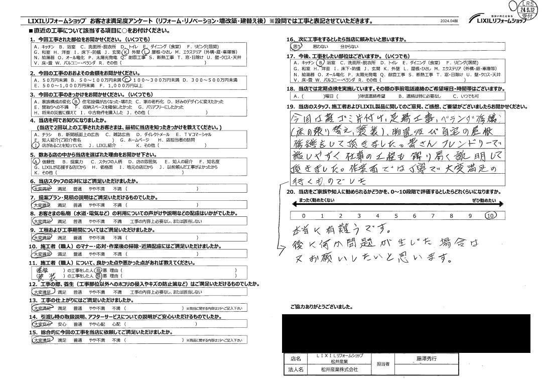 埼玉県三郷市S様邸外壁屋根改修工事のアンケートをいただきましたので共有させていただきます。