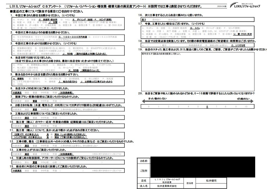 埼玉県三郷市H様邸よりインプラス・リシェント内窓工事アンケートをいただきました。