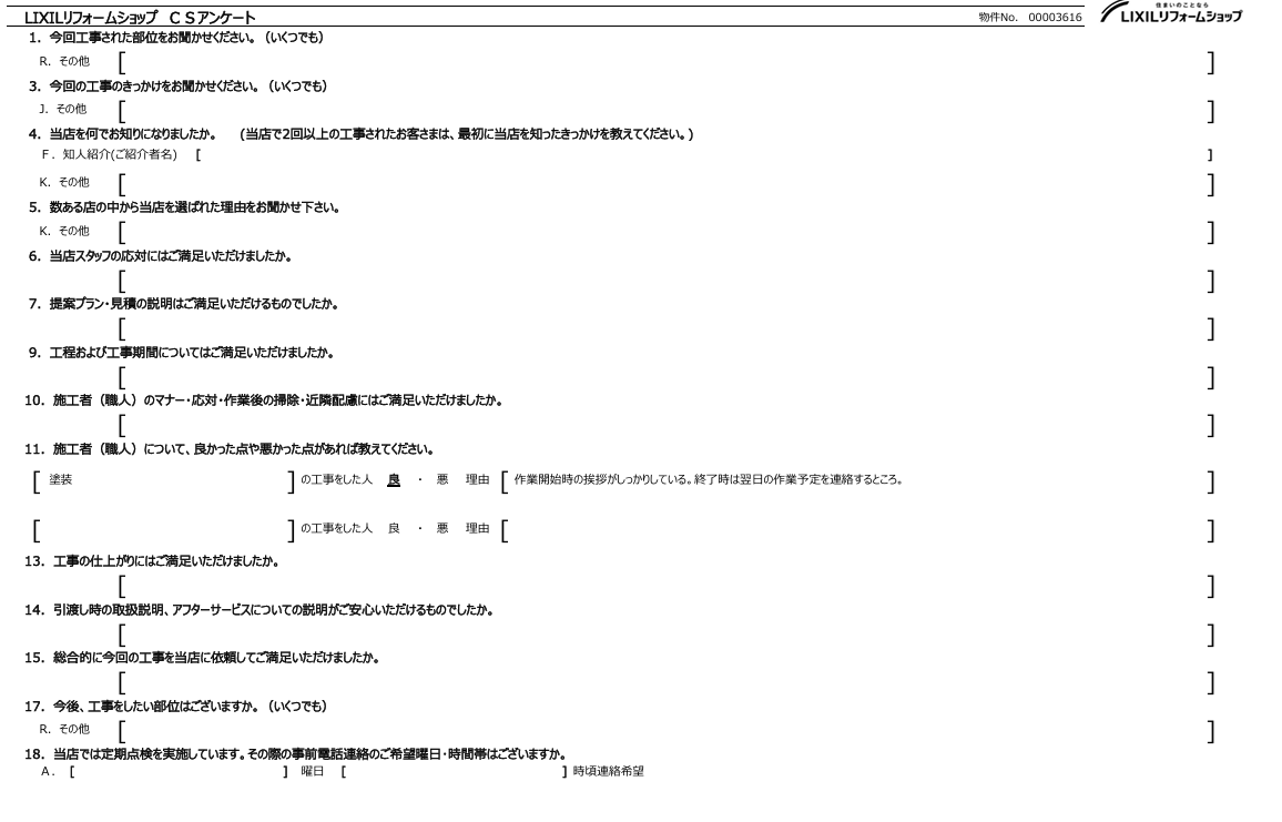 「スタッフ(松井産業)の方が定期的に作業進捗をチェックに来て、とても安心感があった。施工者の仕事がとても丁寧で管理が行き 届いている印象を受けた。問題のある部分について事前に連絡があり、信頼性がある」