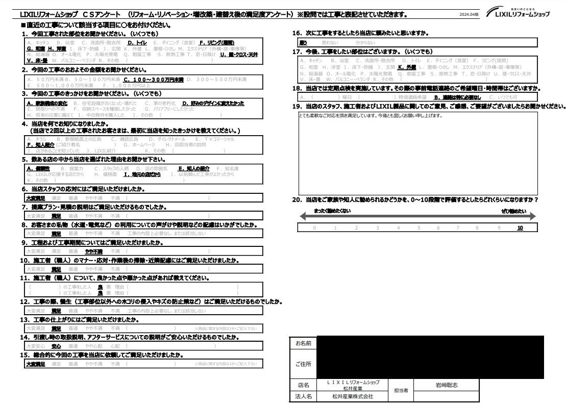 お客さま満足度アンケート