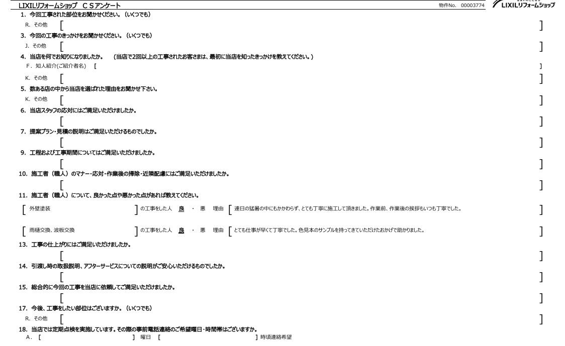 埼玉県吉川市U様外壁屋根塗装工事アンケートをいただきました。