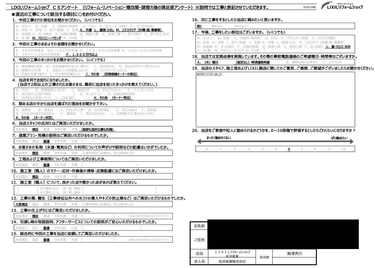 お客さま満足度アンケート