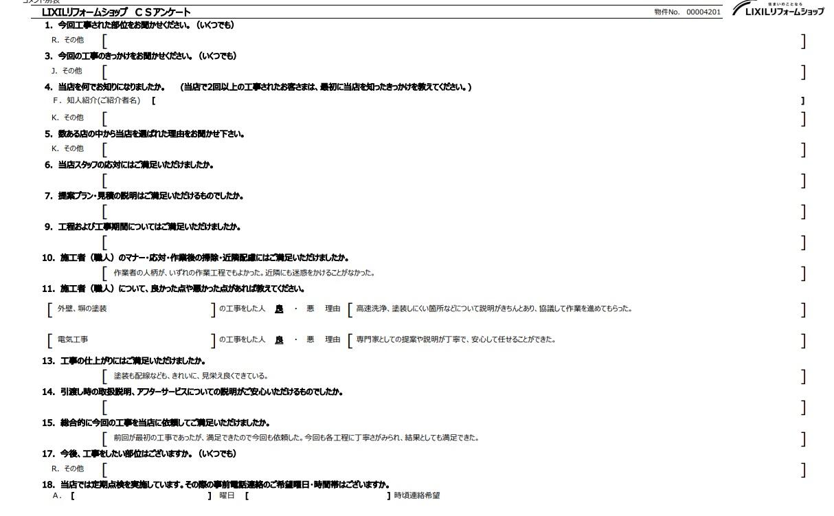 多くの評価項目にて、最高ランクの「大変満足」という回答を頂戴しました。とりわけ、現場の作業員に対して温かいメッセージをいただいております。