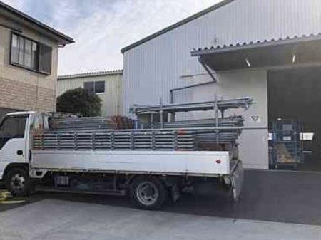 三郷市S様倉庫は外壁塗装工事が始まります。足場を設置しました。当社ではアプリを使って職人さんや協力業社さんより自主検査報告書を送っていただきます。シートをしてイメージシートを張り安全第一で工事を行います。
