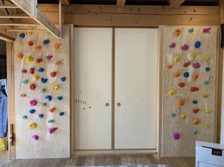 三郷市M様よりリビングを改修してボルダリング、雲梯を設置したいとのお仕事をいただきました。オリンピックの年です。スポーツクライミングも流行ってますしボルダリングもたくさんの人に認知されるようになりました。子どもの頃からボルダリングや雲梯にも親しんでもらいたいという想いもあるようです。早速内部を見せていただき柱にラーチベニヤを重ねてクライミングホールドを設置、雲梯は梁を使って設置しボルダリングから直接雲梯まで行けるようなつくりにしました。大工さんも案外楽しそうにつくってましたのでこういう仕事も面白いと思います。