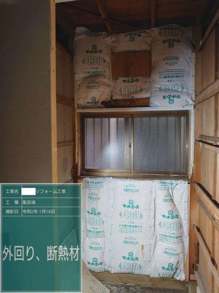 既存風呂の解体、補強が完了したら土間打ち、断熱材を施工しました。ユニットバスを搬入し施工しています。ユニットバス施工完了しました。
