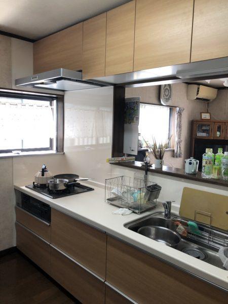 今までのキッチンが作業スペースやシンクが狭く落ちない汚れも多くなり設備を新しいものに一新したいとご要望を受けてTOTOのシステムキッチンを導入することをご提案しました。同じ広さでも昔の物に比べてシンクやワークトップが広く家事の効率がアップします。更に嬉しいのは色合いもきれいで生まれ変わったキッチンを見てO様も大変喜んでおられます。