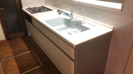 三郷市A様邸キッチン交換工事です。トクラスBb W2250を取り付けさせていただきました。人造大理石天板、吊戸棚、サイクロンフードⅢもついています。シンクと天板のつなぎがとてもなめらかで、またシンクの色具合もカラフルに選べるので女性に大変人気があるキッチンだと思います。新築でもリフォームでも奥様がとても喜ぶキッチンです。下地、キッチン組立、解体・配管・木工事・電気を含めて71万円で材工コミコミで工事をさせていただきました。