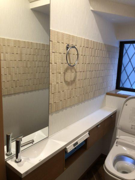 三郷市K様邸トイレ改修工事です。LIXIL水洗トイレサティスGタイプです。キャパシア フロートキャビネット、内装工事と壁1面エコカラット(ラフソーン)も付け加えています。取付、撤去費用を含めて64万円で施工させていただきました。アフターの写真です。とても美しくデザイン性のある内装になりました。オールLIXILの商品です。次世代エコポイント活用もしての工事になりました。お客様より嬉しい感想をいただきました。「色々と提案、アドバイス頂き大変心強かったです。工期中枚一足を運んでくれたので安心できました。次回リフォームを依頼する機会があれば武山さんに担当して頂きたいと思っております」エコカラットは良いですね。調湿や消臭機能があり内観も美しくなります。リクシルでもエコカラット20周年ということでキャンペーンをしています。リクシルではエコカラットのお見積もりをいただいた方に抽選でワンピースの絵が入ったエコカラットがプレゼントされるとのこと。ワンピースが好きな方はぜひ担当にご相談ください。2019年12月までのキャンペーンです。