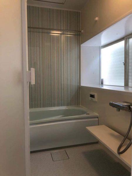 在来タイルのお風呂をユニットバスへ改修しました。既存の浴室を解体しユニットバスを取り付けます。解体、土間コンクリートから給水・給湯・排水・追い焚き配管撤去を行い給水・給湯・排水・追い焚き配管接続工事をします。