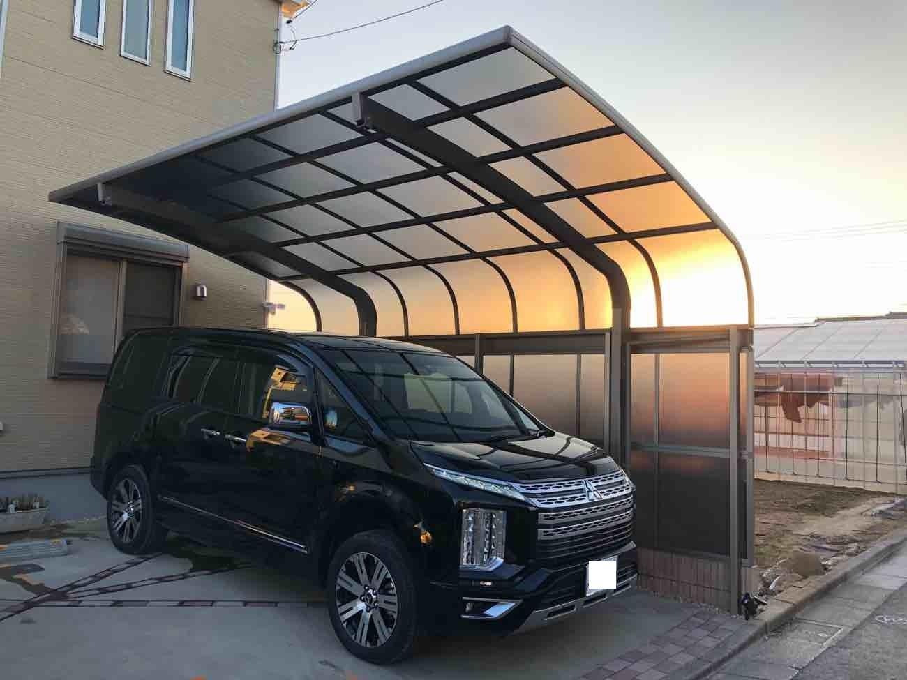東京都葛飾区M様邸はカーポート工事が完了しました。 LIXIL テールポートシグマⅢ 5030型 熱線吸収ポリカ オプション ロング柱28 サイドパネル L50用2段 熱線吸収ポリカ 土間斫り 支柱固定