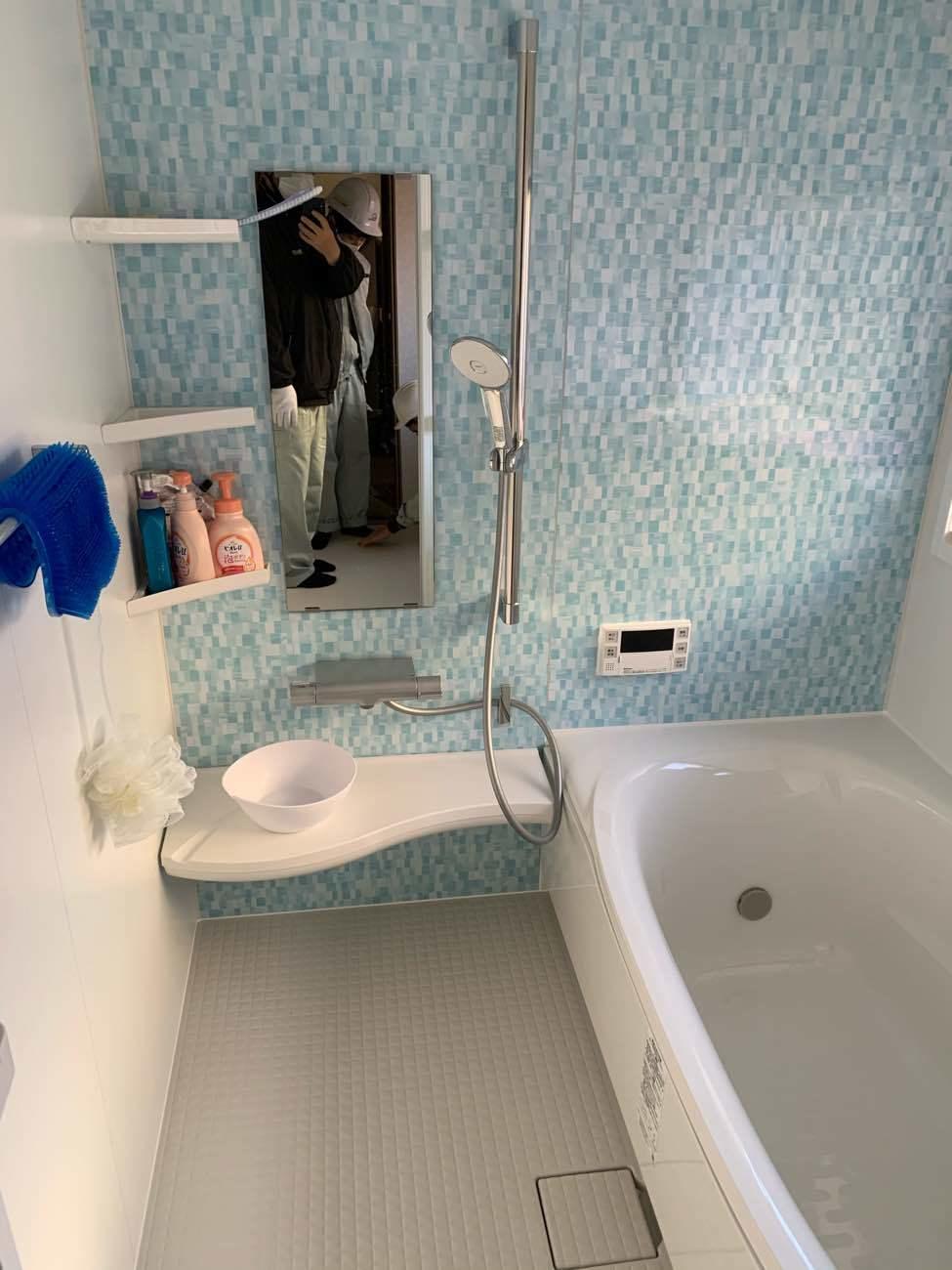 浴槽の位置やドアの位置も変更しました。既存のタイルのお風呂からお掃除がしやすくあたたかいユニットバスになりお施主様も大変お喜びです。