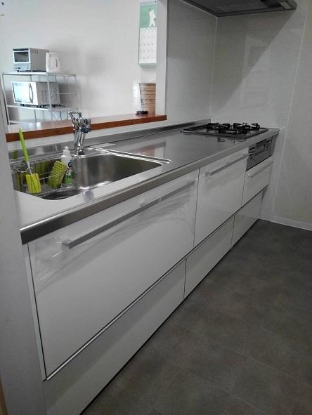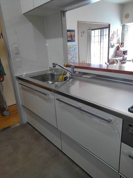埼玉県三郷市さつき平マンションT様邸キッチン交換工事は内装が完了しました。クリナップ ラクエラです。