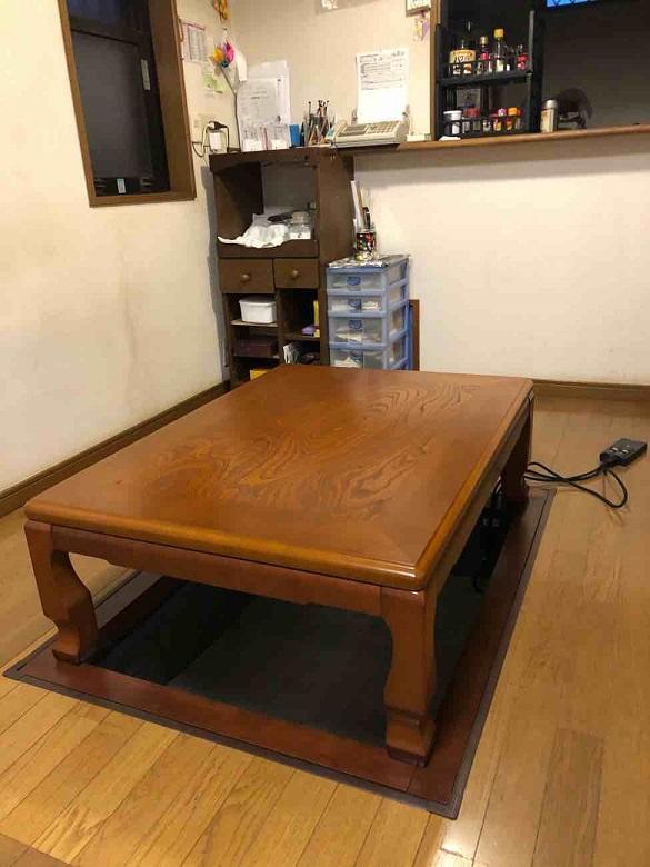 既存フローリング掘り炬燵用穴加工造作 床下地補強含む 電気工事 掘り炬燵用専用回路配線工事 新規掘り炬燵 3尺×4尺 DAIKEN 伝統和座卓 洋間用 見切り 施工 組立・取付・設置