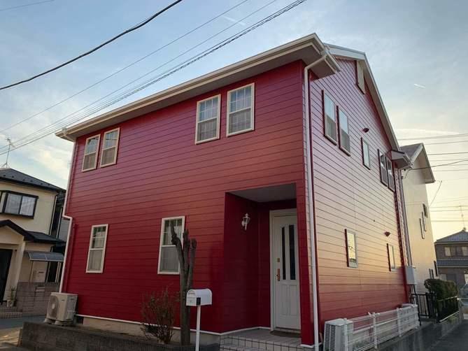 埼玉県北葛飾郡松伏町S様邸外壁屋根塗装工事が完了しました。レッドとホワイトの色合いがアメリカンスタイルの感じを出してオシャレで美しい色合いに仕上がりました。