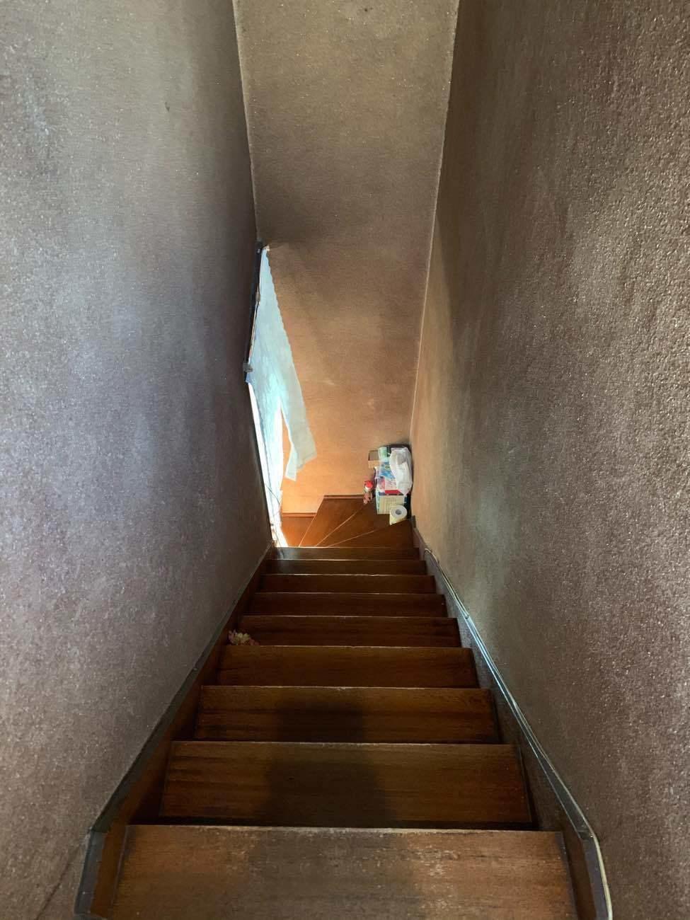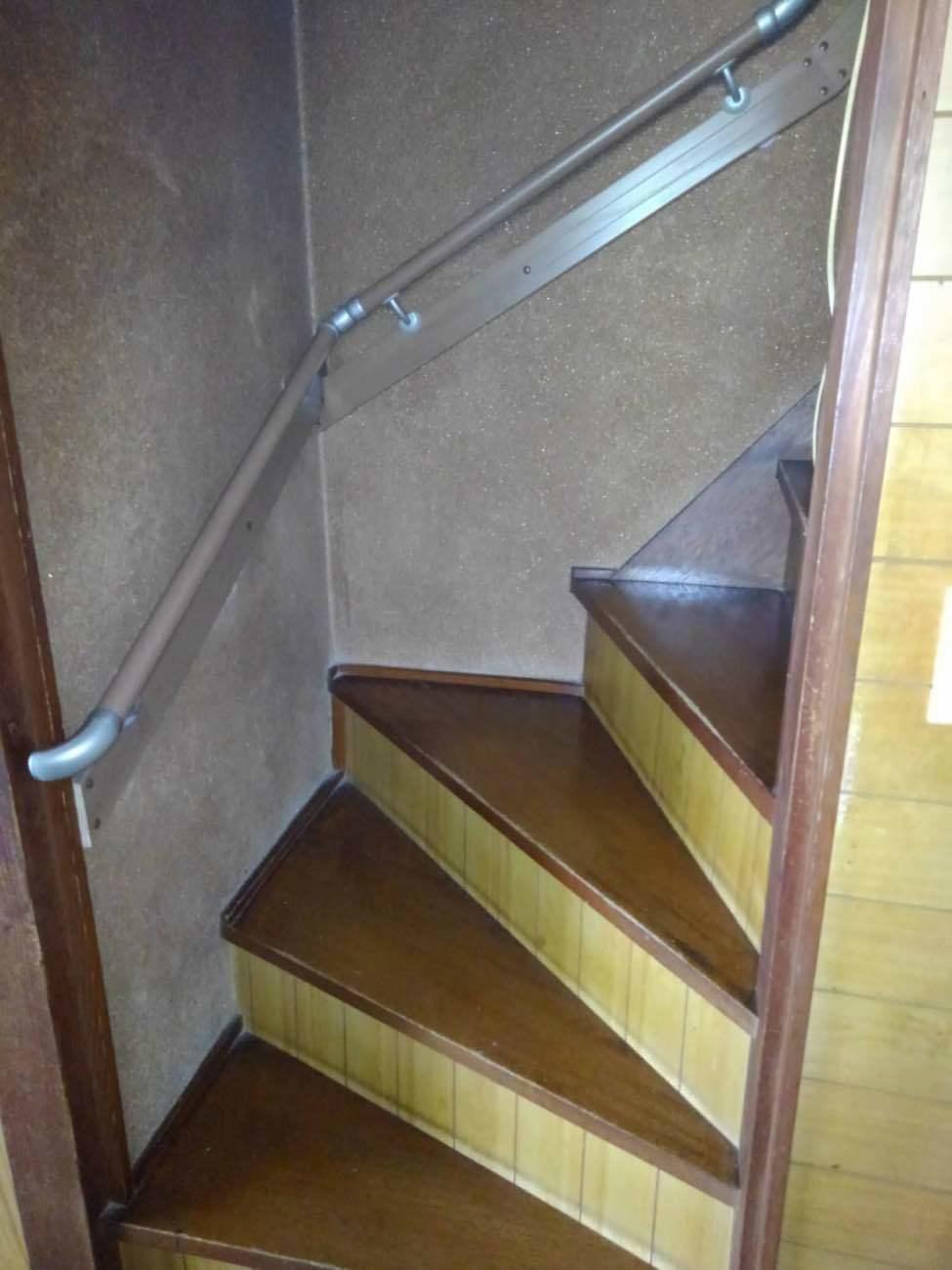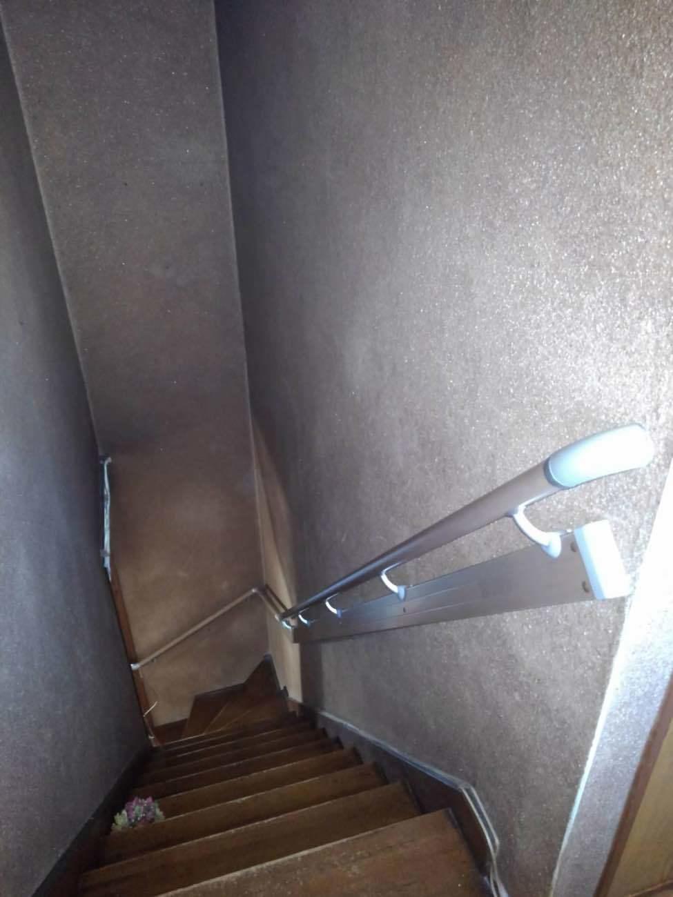 埼玉県北葛飾郡松伏町S様は階段手摺設置工事です。階段砂壁に専用ブラケットベースを取付け手摺を取り付けました。