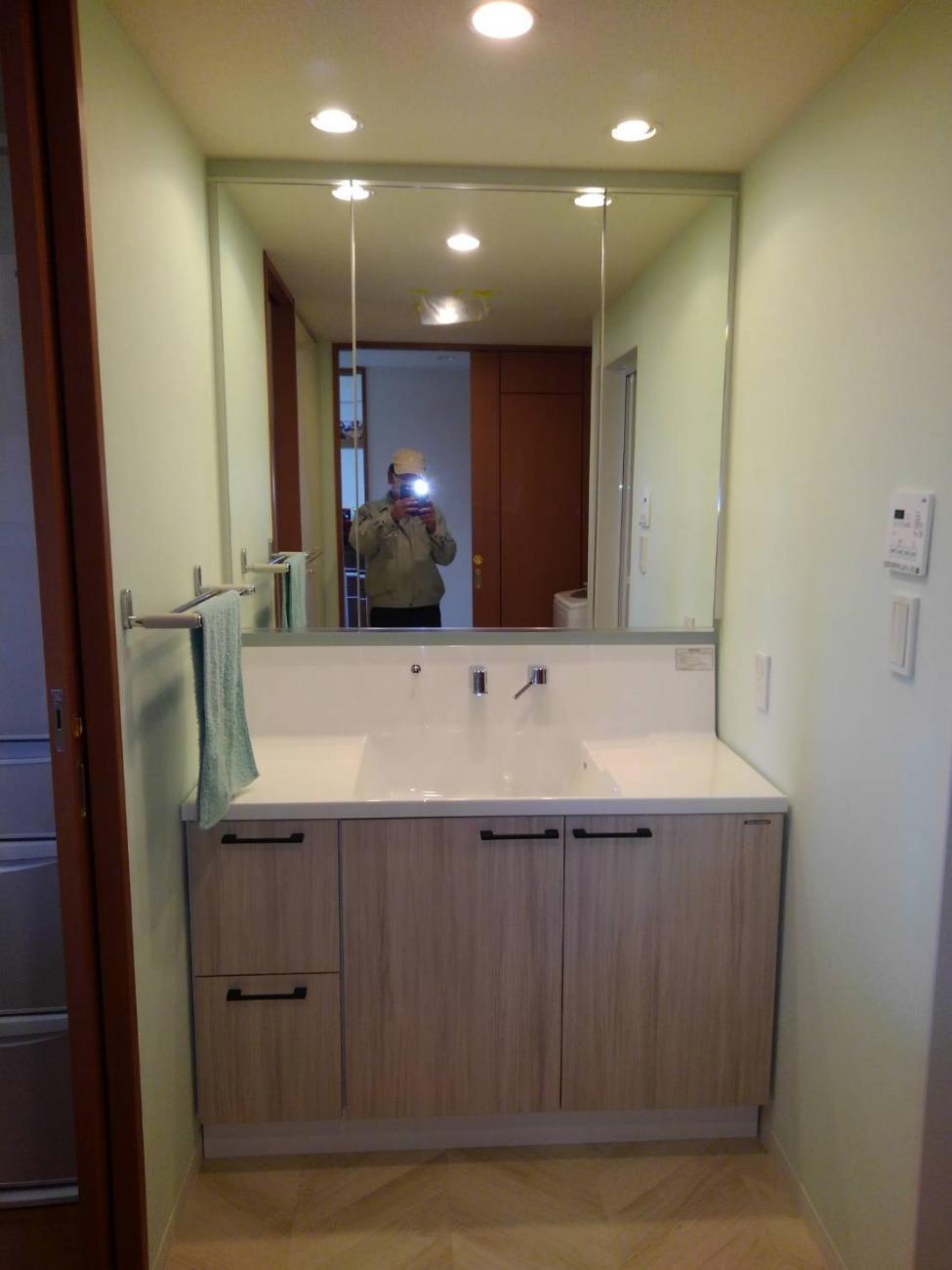 【埼玉県三郷市】K様邸洗面化粧台交換工事 タカラ REJUST W1200
