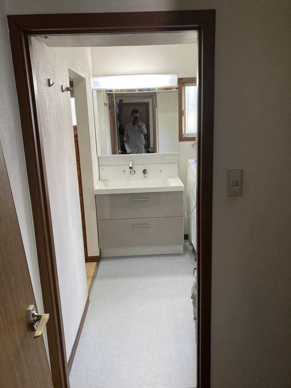 LIXIL洗面化粧台 ピアラ/W900 H800 施工解体、配管、組立て