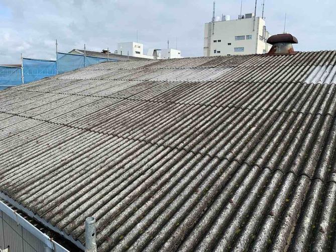 埼玉県三郷市M様倉庫スレート屋根ガルバリウムカバー工事が完了しました。