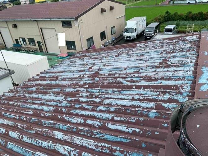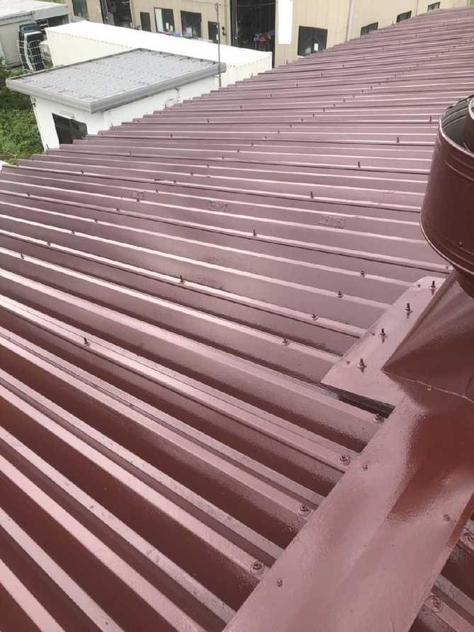 埼玉県吉川市T様倉庫屋根塗装工事が完了しました。ヤネフレッシュSI 錆を落として下塗り、中塗り、上塗りを行いました。