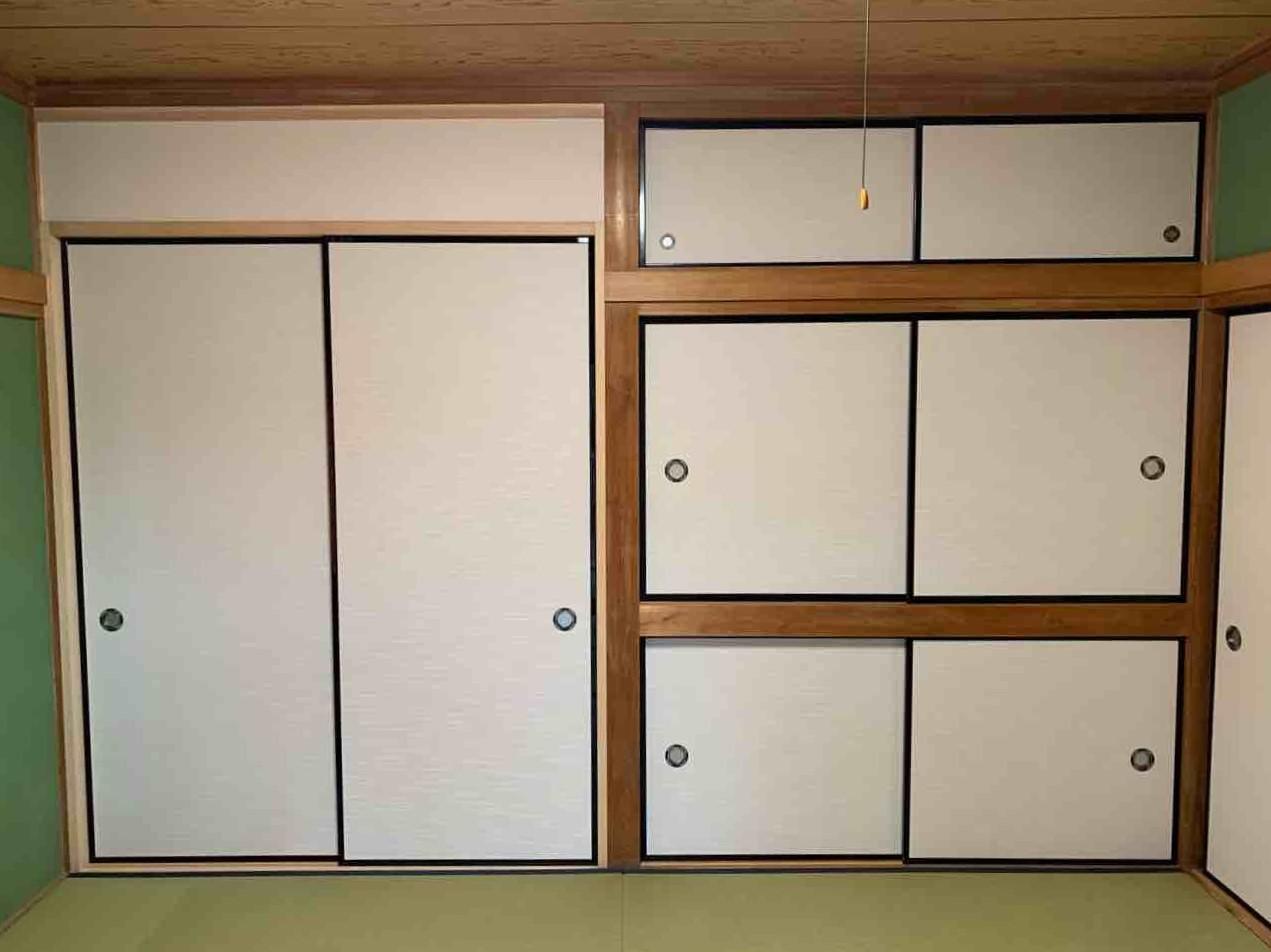 埼玉県三郷市O様邸和室改修工事が完了しました。床の間から襖収納に変更木工事です。もともと裏にあった浴室を広げた関係で、洗面室にあった洗濯機置き場を既存襖の裏にもってくる必要があり収納が少なくなるので襖部分を収納にしました。