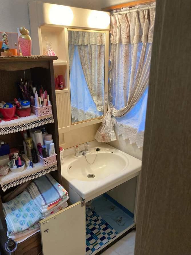 東京都葛飾区O様邸洗面化粧台工事が完了しました。 TOTOVシリーズW600 洗面化粧台本体 化粧鏡本体 脱着施工費 給排水管 床張替え クッションフロア