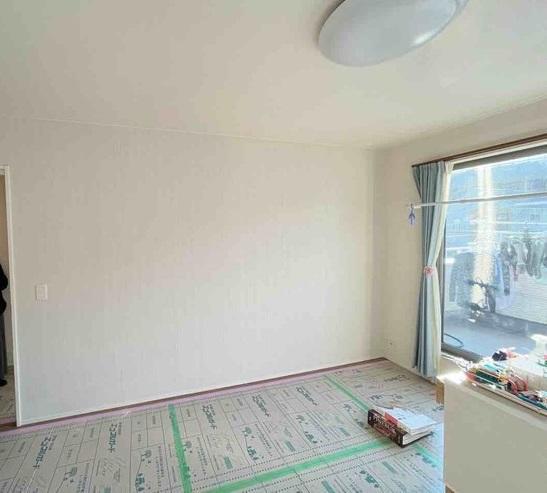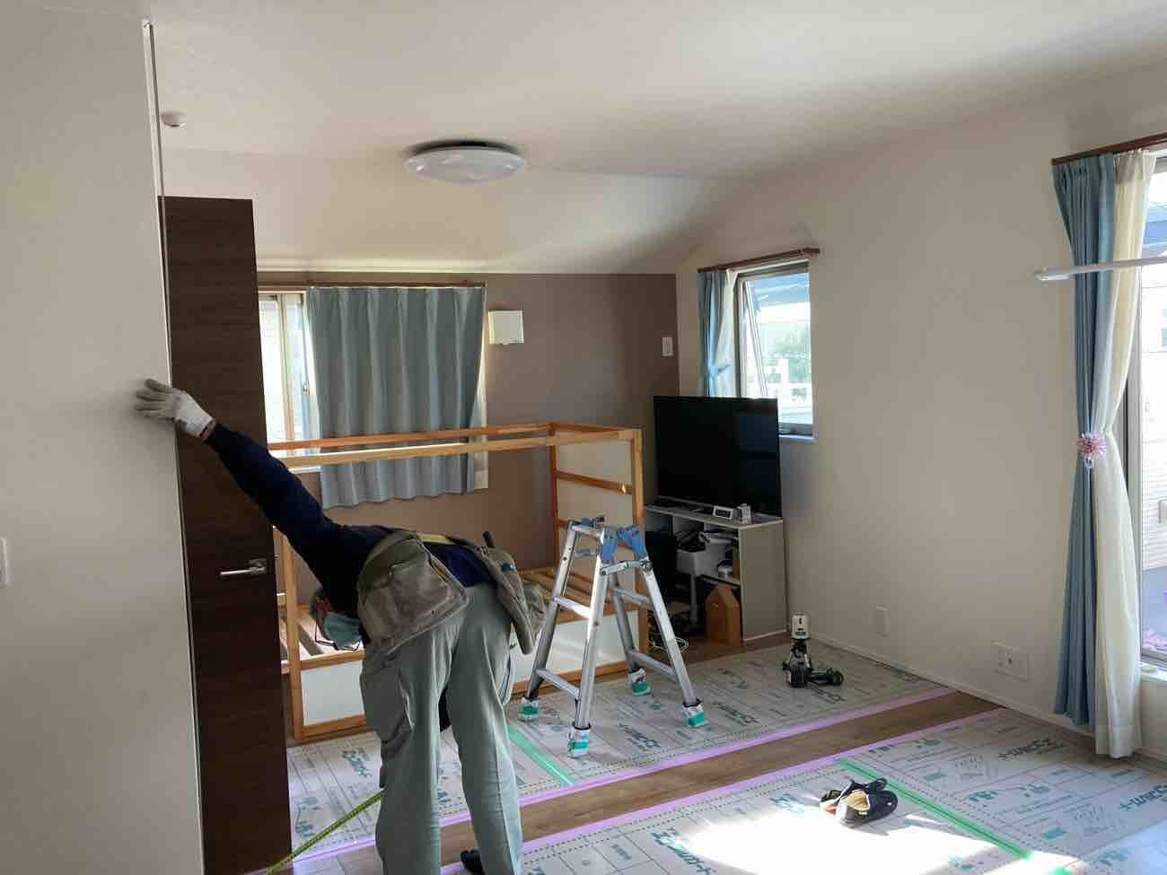 埼玉県三郷市O様邸マンション間仕切り設置工事を行いました。 間仕切り造作工事 間柱 石膏ボード 断熱材 D100 LIXIL クッション幅木スマート 大工造作手間