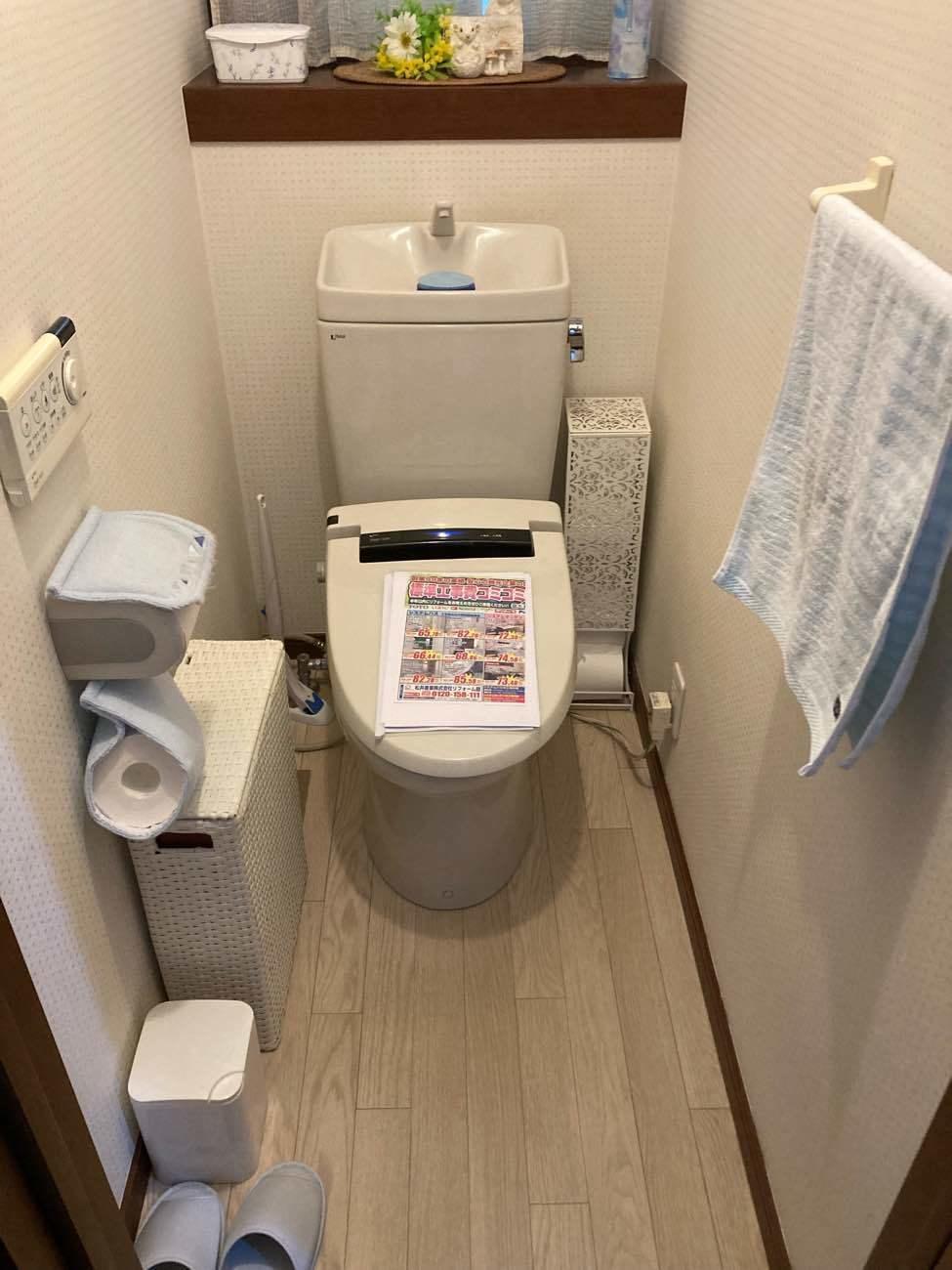 埼玉県越谷市K様邸トイレ交換工事が完了しました。 TOTOピュアレストQR 便器 手洗い付きタンク 便座(リモコン付き) 交換施工