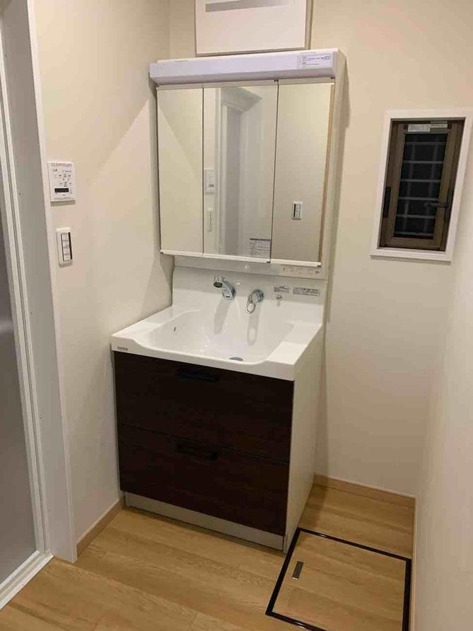 埼玉県三郷市K様邸洗面化粧台交換工事を行いました。 トクラス洗面化粧台 トクラス エポック 750 ベースセット・ミラーキャビネット 既存洗面化粧台撤去処分 新規洗面化粧台取付工事