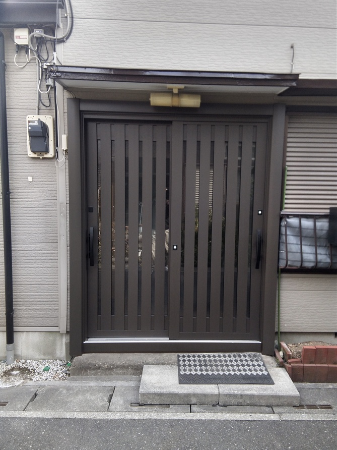 埼玉県三郷市Y様邸LIXIL引戸リシェント 網戸なし 手動キー ランマ無 アーチハンドル 両側 ブラック