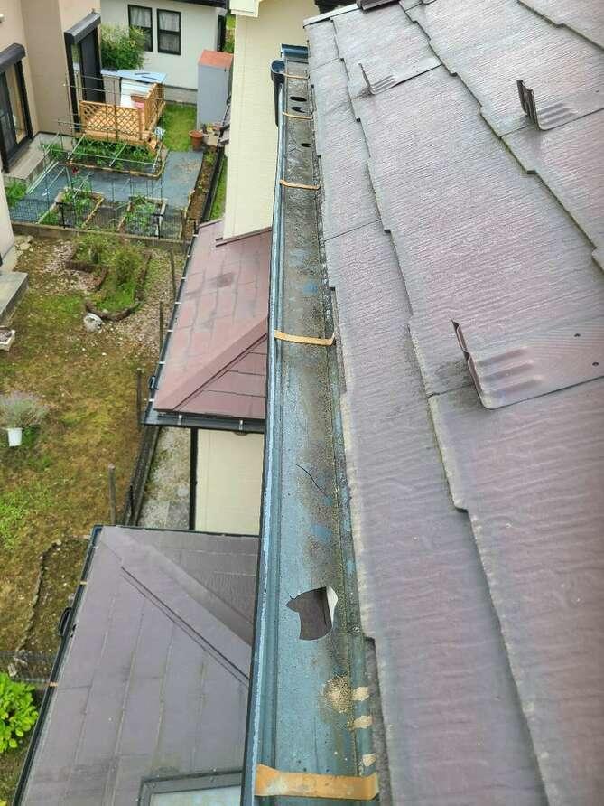 埼玉県北葛飾郡松伏町A様邸は先日6月3日の雹被害により、雨樋の破損など大きな被害となりました。