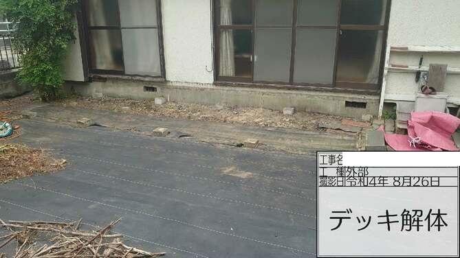 埼玉県吉川市S様邸はウッドデッキ工事が完了しました。 解体作業 既存ウッドデッキの解体 新規施工 デッキ45角 1950mm 102本 柱防腐材注入済100角 1000mm 8本 土台105角 1300mm 12本 防腐剤の塗装 キシラデコール 大工 4人工
