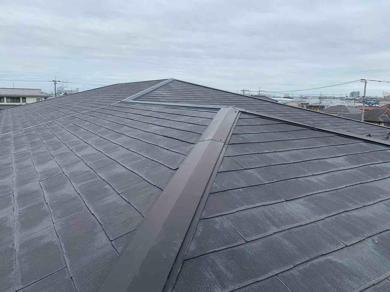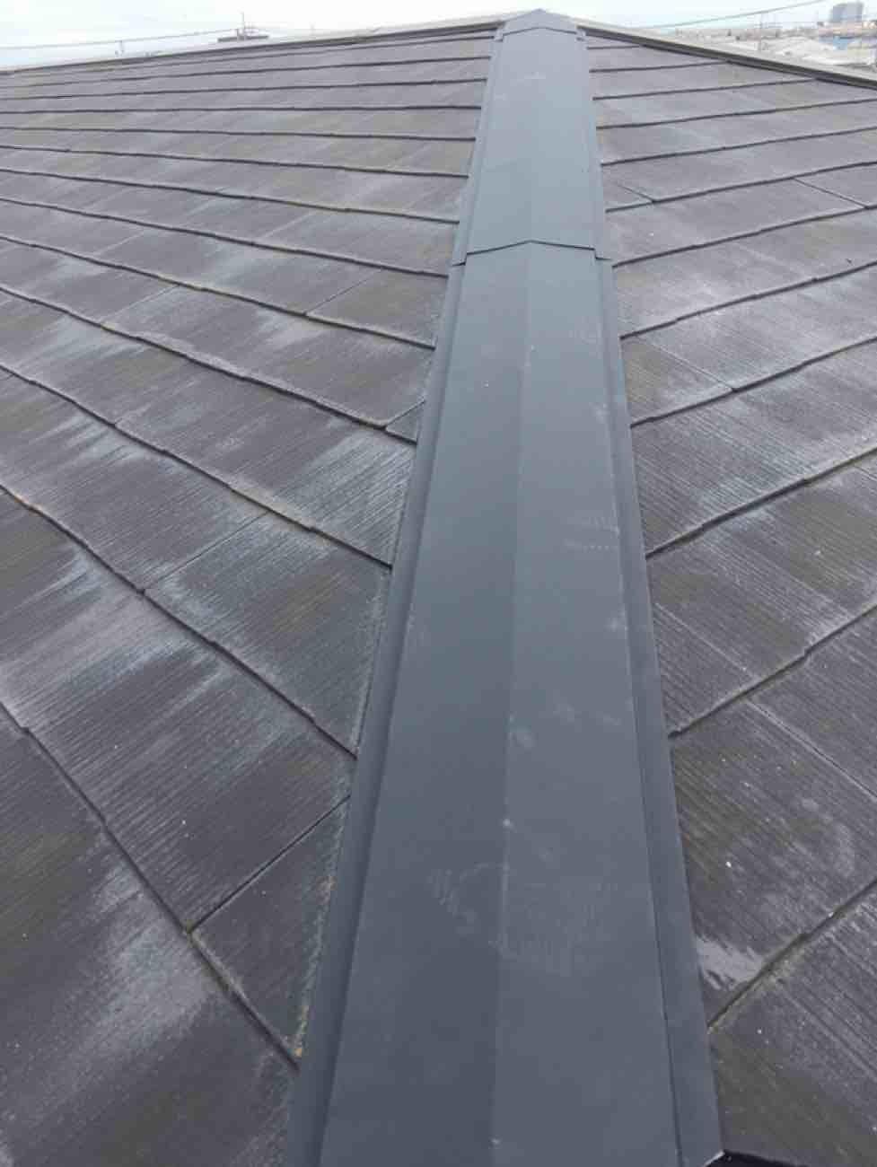 埼玉県三郷市M様邸は風害により棟板金がとれている状態でした。ドローンを飛ばして屋根を調査してわかりました。棟板金補修工事となります。