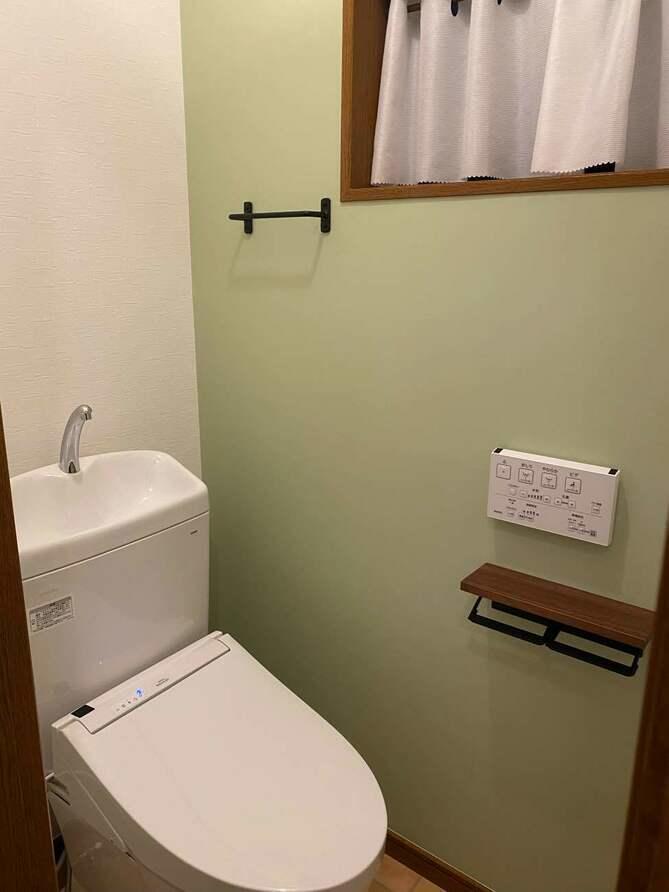 埼玉県吉川市K様邸トイレ交換工事が完了しました。 TOTOピュアレストQR 手洗付密結タンク ウォシュレット 脱着施工 床張替え 壁張替え トイレ解体