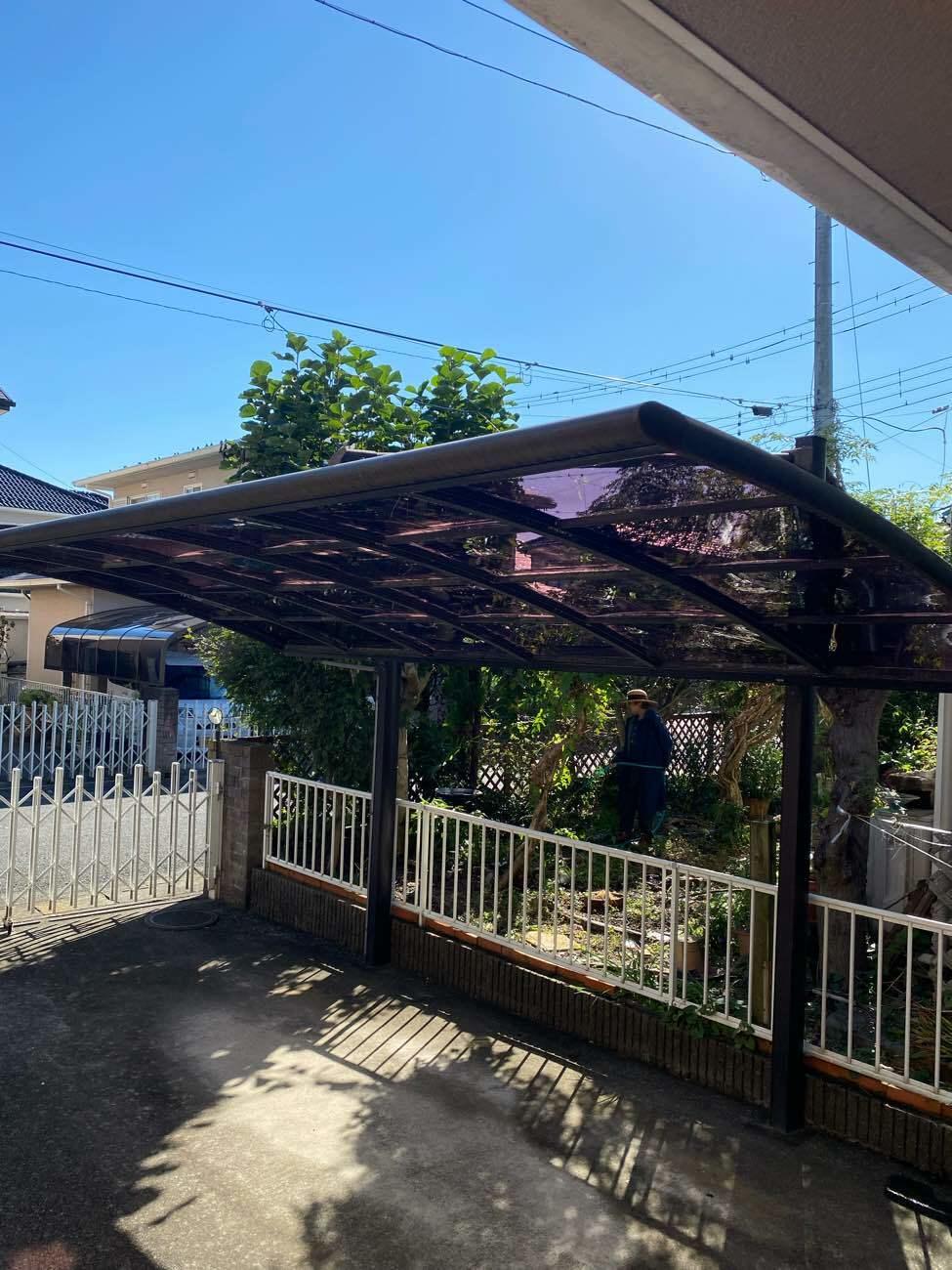埼玉県北葛飾郡松伏町K様邸カーポートパネル交換工事が完了しました。 ポリカ2㎜ ブラウン W890*H2150 ポリカ2㎜ ブラウン W840*H2500 施工 処分