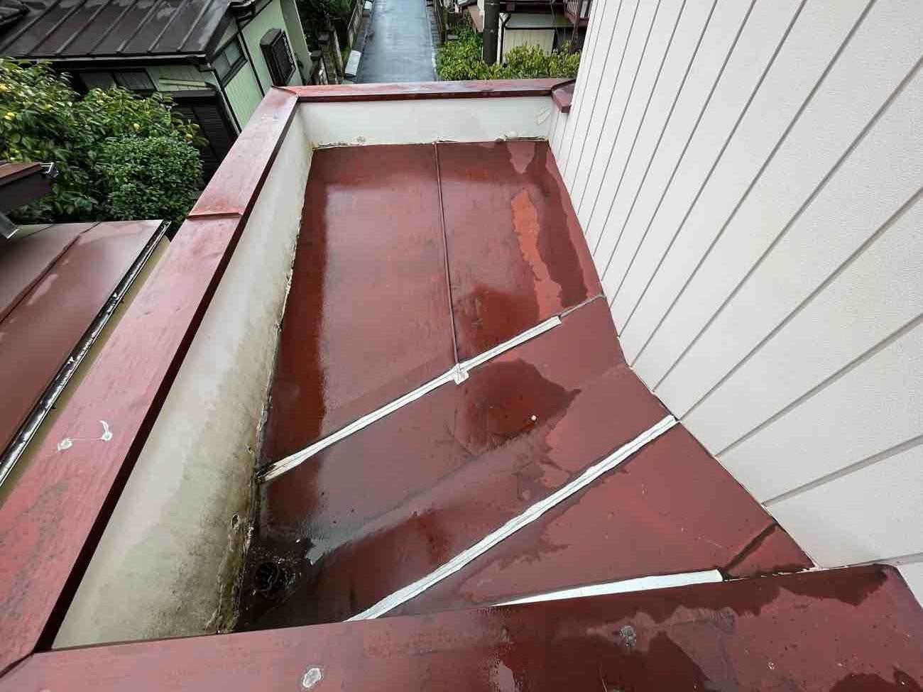 埼玉県三郷市A様邸は雨漏れ修繕工事です。下屋部分から玄関天井に雨漏れ放水検査を行い原因を特定し防水工事を行いました。