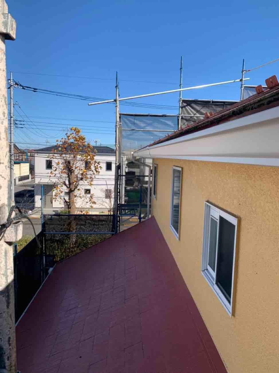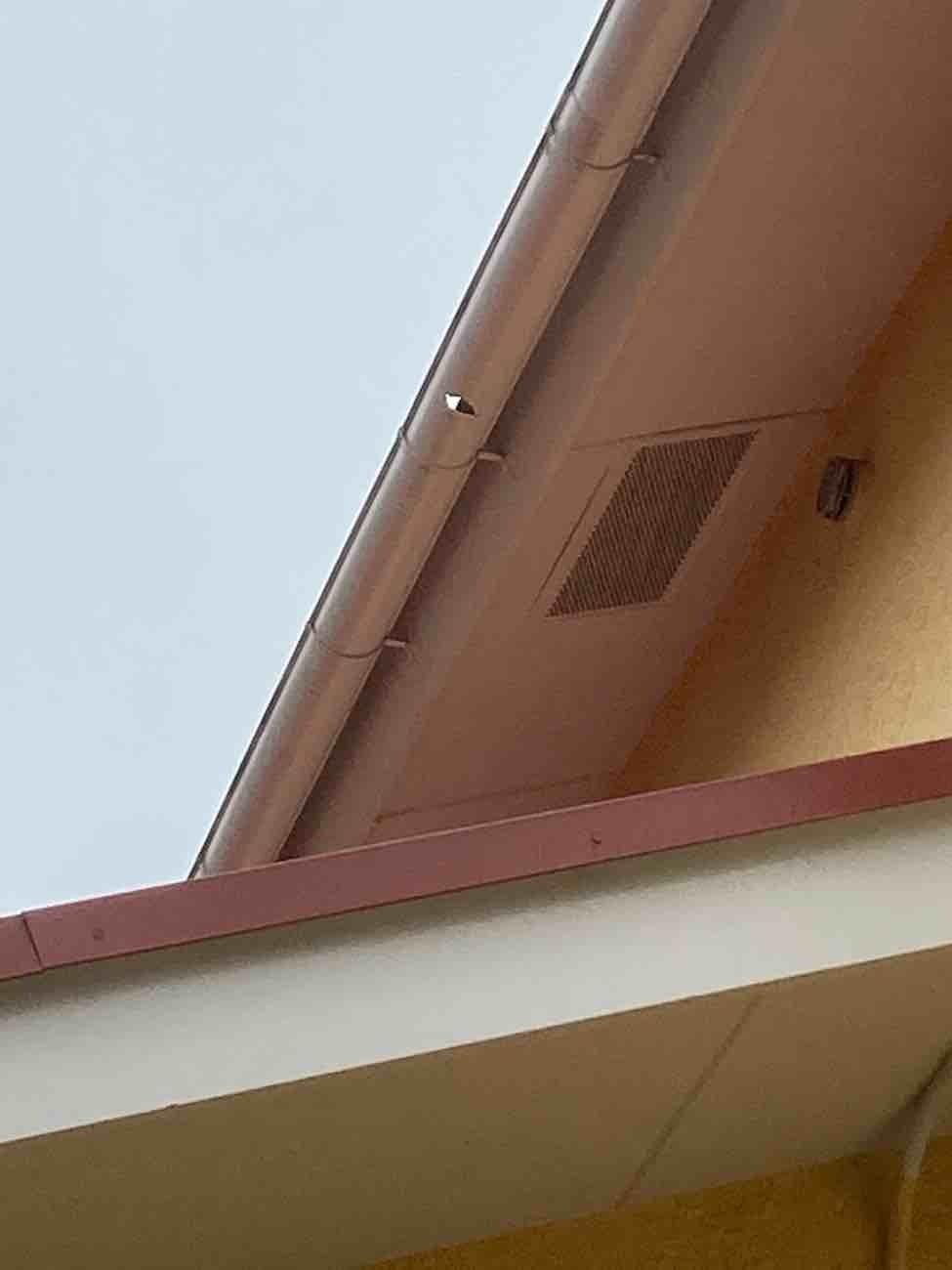 埼玉県北葛飾郡松伏町S様邸雹被害雨樋交換修理工事が完了しました。 仮設足場 既存撤去 軒樋 角 Pana PC50 31.3m 集水器 角 Pana PC50 8ヶ所 軒曲り 角 Pana PC50 1ヶ所 既存竪樋接続 60〇 8ヶ所 玄関上這樋交換