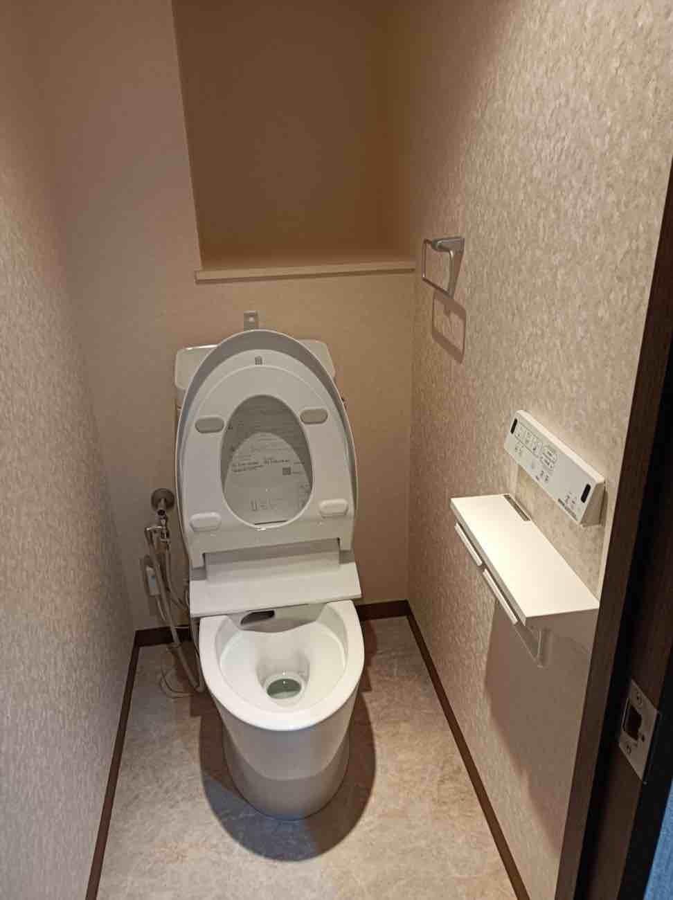埼玉県吉川市M様邸はトイレ交換工事が完了しました。 LIXILアメージュZ リフォーム便器・手洗付タンク ハイパーキラミック ウオッシュレット便座 壁リモコン付流すボタン無 フランジ 排水接続部材 棚付2連紙巻器 タオル掛 交換基本施工