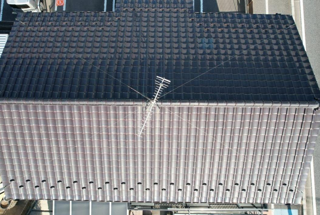埼玉県三郷市O様邸屋根ドローン点検を行いました。 特に問題もなくお客様に写真を見ていただきご安心をいただきました。