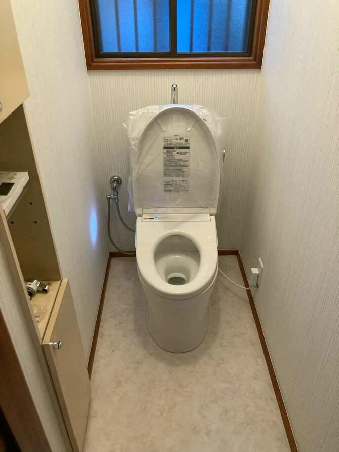 埼玉県吉川市O様邸トイレ交換工事が完了しました。 設備工事 TOTO製ピュアレストQR 便器 タンク ウォシュレットSB フランジ 基本交換施工