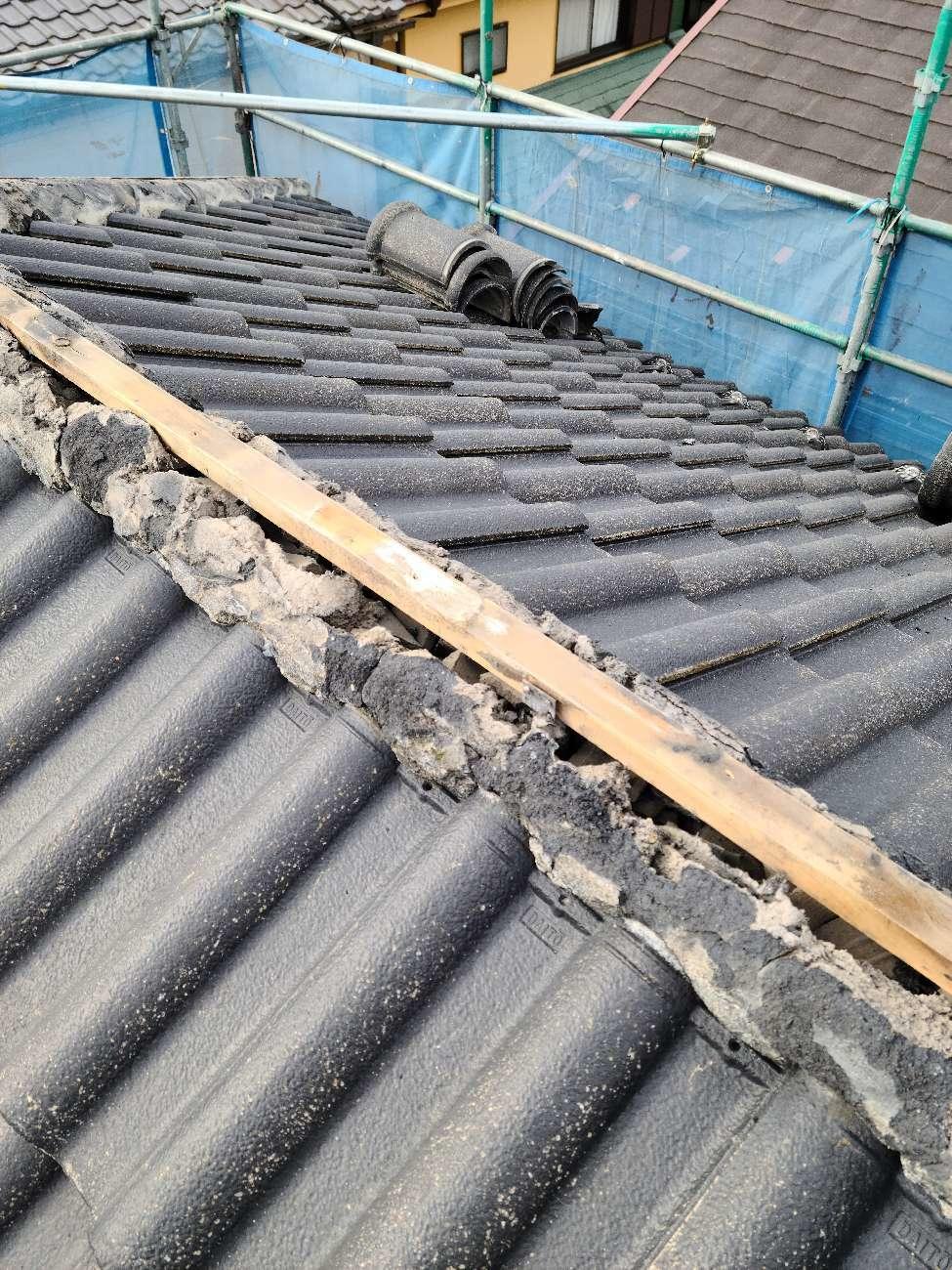 埼玉県三郷市S様邸屋根棟取り直し漆喰補修工事が完了しました。 既存棟瓦撤去 ズレ等瓦補修(棟瓦) 新規棟取り 袖瓦・釘 残土・残材処分