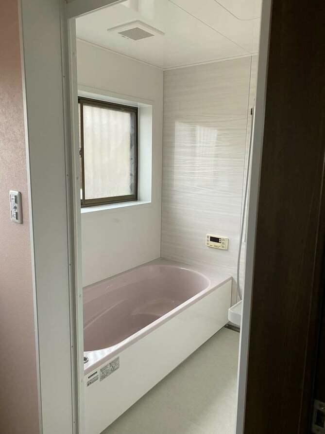 埼玉県三郷市K様邸タイル浴室からユニットバス交換工事が完了しました。 タカラスタンダード グランスパ 1616 浴室組立て工事 標準工事 解体~配管~接続 窓枠加工工事 2窓 ドア枠材 Panasonic 白 ドア枠設置 ドア枠隙間
